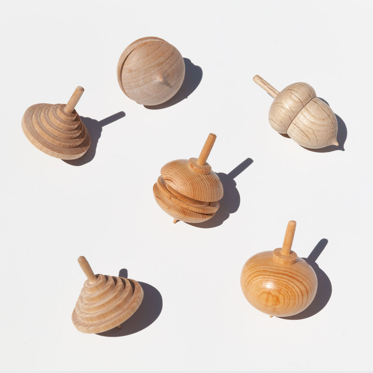 These traditional Japanese wooden spinning tops are made by hand. Each top has a unique, delicate beauty and makes a great host gift.