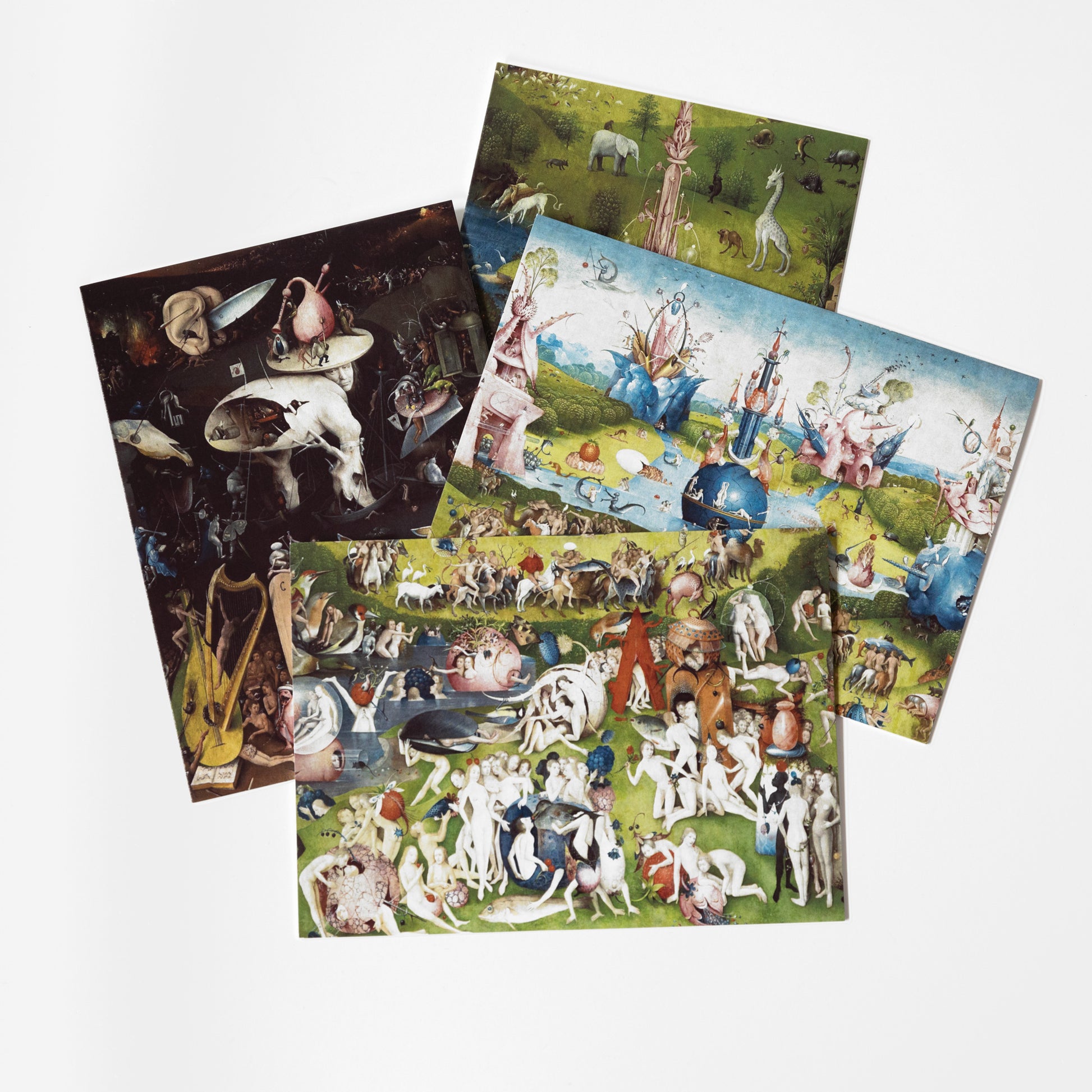 A collection of notecards featuring the works of Hieronymus Bosch. Each set comes with a set of 16 cards and highlight 4 works.